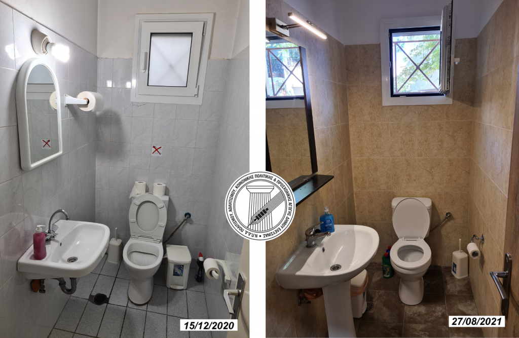 Αντικατάσταση υδραυλικών, τοποθέτηση νέων πλακιδίων και ειδών υγιεινής στις πέντε τουαλέτες του κτηρίου (κοινού και προσωπικού)