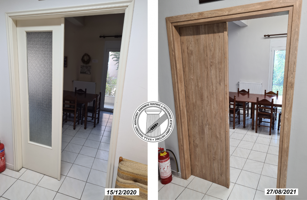 Κατασκευή δύο ντουλαπών, η μία για τις ανάγκες των δραστηριοτήτων των μελών και η άλλη για αποθήκευση του εξοπλισμού του ΚΑΠΗ.